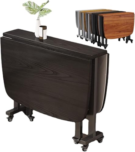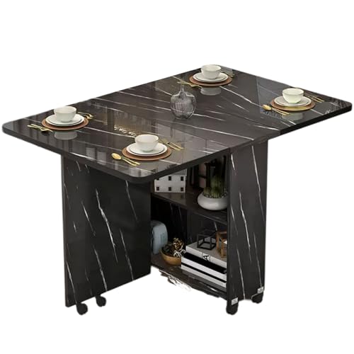 Table de Cuisine Pliante Interieur Table Pliante en Panneaux Artificiels, Table De Salle À Manger Pliante Multifonctionnelle avec 8 Roues et Espace de Rangement(Black,120 * 60 * 77cm)