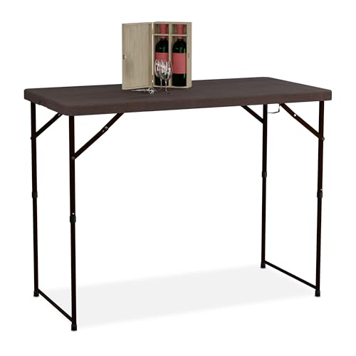 Relaxdays Table de Camping Pliante, HLP: 53,5x120x60 cm, Plastique & Acier, résistante aux intempéries, Marron