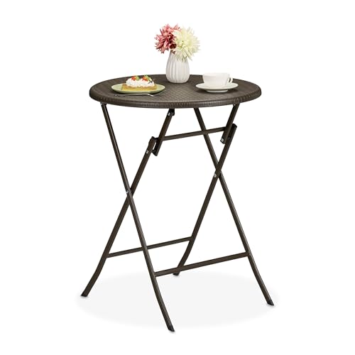 Relaxdays Table de Jardin Pliante, 75 x 60 cm, Aspect rotin, en Plastique et Acier, pour l'extérieur, Marron