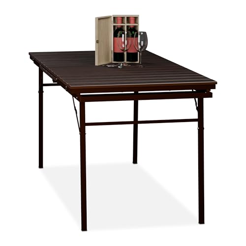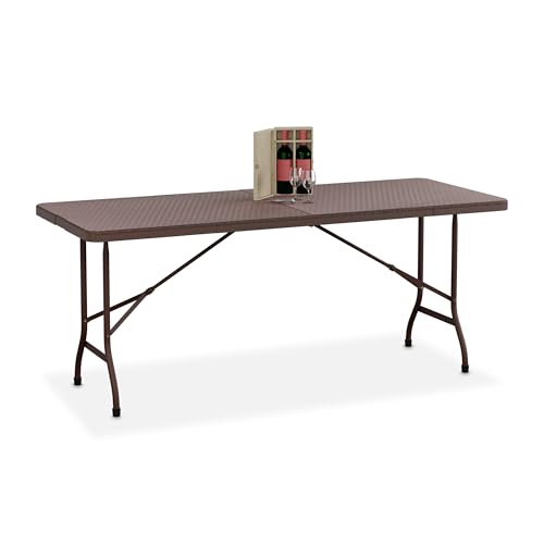 Relaxdays Table de Jardin Pliante, 72x180x74 cm, Plastique et Acier, résistante aux intempéries, 8 Personnes, Marron