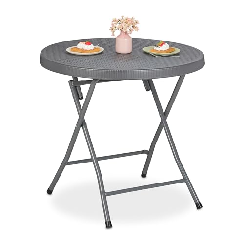 Relaxdays Table de Jardin Pliante, 74 x 80 cm, Aspect rotin, en Plastique et Acier, résistante aux intempéries, Grise