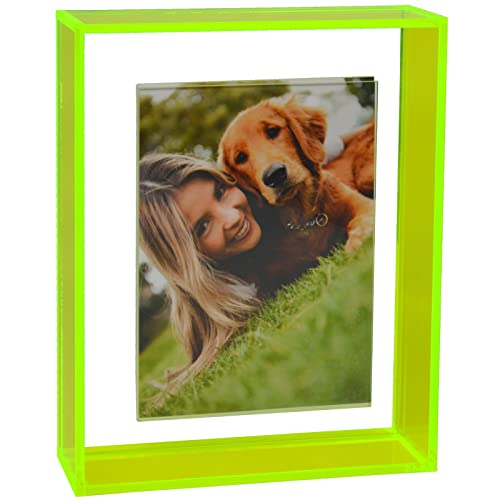 Mutellstory Cadre photo flottant en acrylique avec aimant coloré - Montage mural de table - Pour galerie, bureau, salon, vert fluo - 20,3 x 25,4 cm