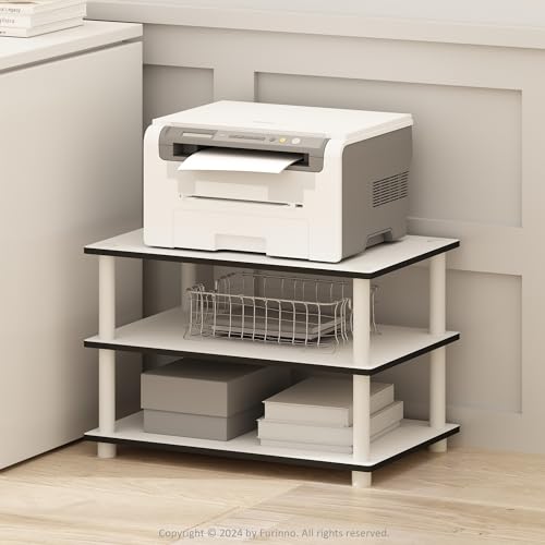 Furinno Just Support d'imprimante avec Rangement, Support à 3 Niveaux sous Bureau, Table pour imprimante, unité Centrale et Fournitures, Bureau à Domicile, Blanc