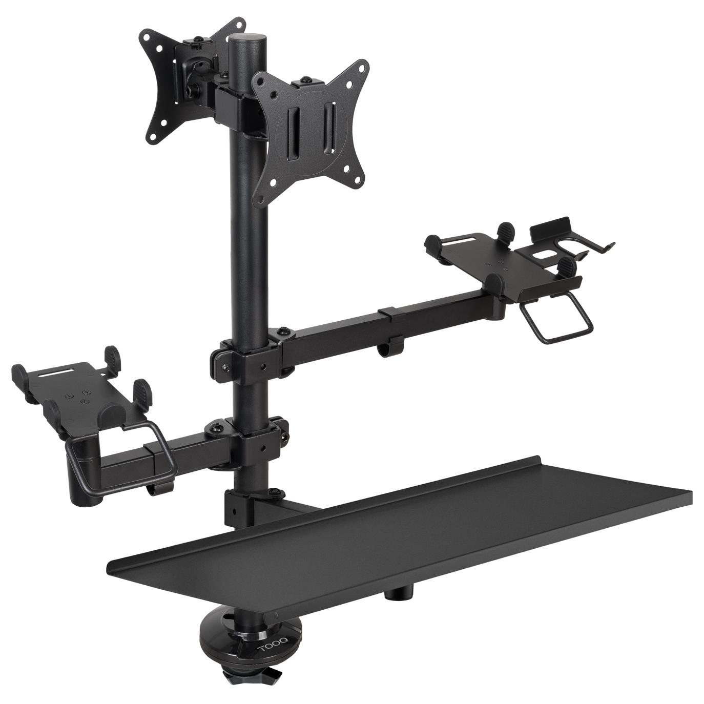 TooQ TQPM0002 - Support de table ajustable pour POS, permet l'installation d'une imprimante + 2 écrans 17"-32" + terminal avec lecteur, Couleur Noir