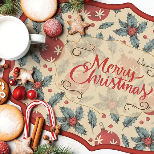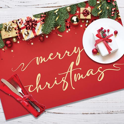 VILBER Lot de 4 Sets de Table en PVC Rouge (30,5 x 45,6 x 0,2 cm), PVC Polyester, antidérapant, Lavable, résistant à la Chaleur, avec possibilité de Pack de 6, Chemin de Table et Tapis