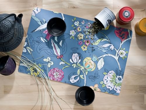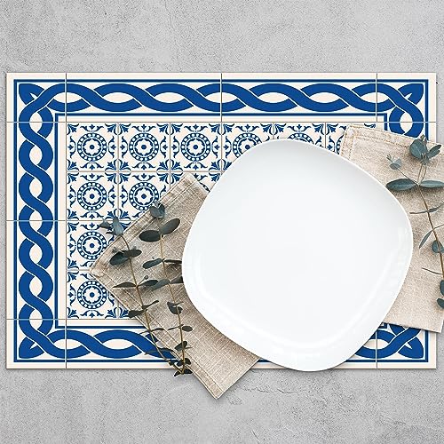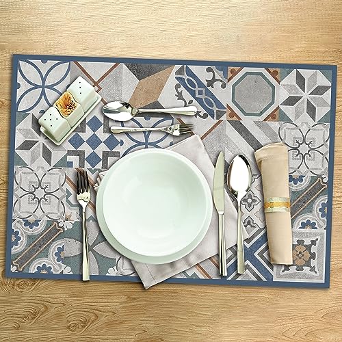 Lot de 4 Sets de Table en PVC Bleu 03 (30,5 x 45,6 x 0,2 cm), antidérapant en Polyester, Lavable, résistant à la Chaleur, avec possibilité de Pack de 6, Chemin de Table et Tapis Assortis
