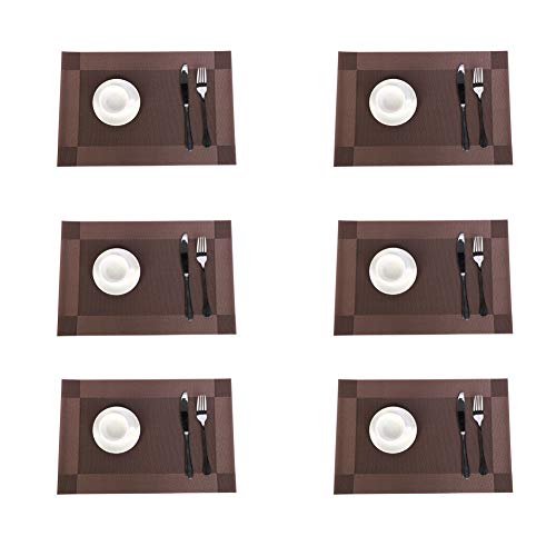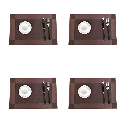 Jaritto Lot de 4 Sets de Table PVC Napperons Vinyle Tissé Lavables Resistant à la Chaleur Antidérapant pour Restaurant Salle Manger Marron Foncé