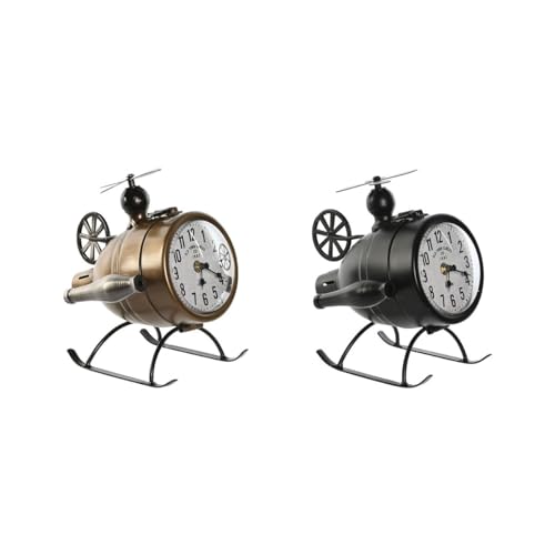 Home ESPRIT Horloge de Table Noir Or PVC Métal Loft 18 x 23 x 24 cm (2 unités)