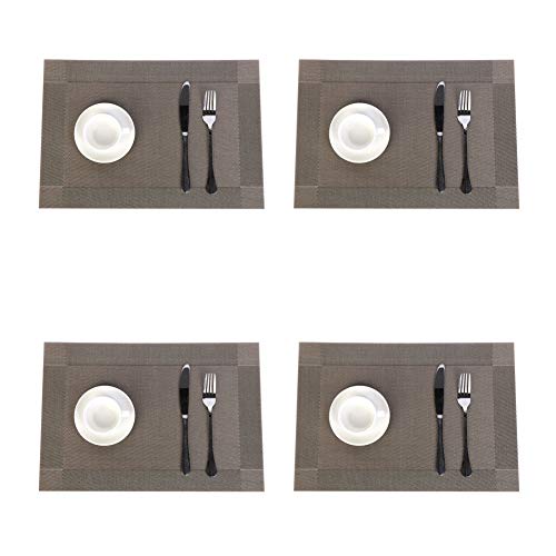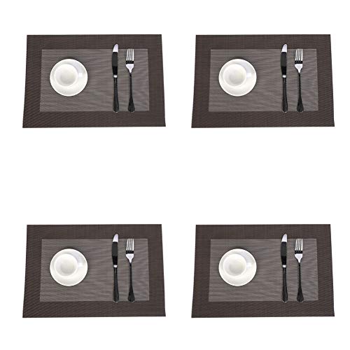 Jaritto Lot de 4 Sets de Table PVC Napperons Vinyle Tissé Lavables Resistant à la Chaleur Antidérapant Restaurant Salle Manger Café Foncé JRCD4PC-15