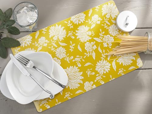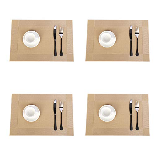 Jaritto Lot de 4 Sets de Table PVC Napperons Vinyle Tissé Lavables Resistant à la Chaleur Antidérapant pour Restaurant Salle Manger Jaune