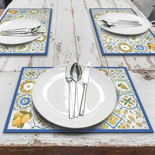 CREARREDA Lot de 4 sets de table en PVC, 48 x 33 cm, antidérapants, lavables, résistants à la saleté, résistants à la chaleur, fabriqués en Italie