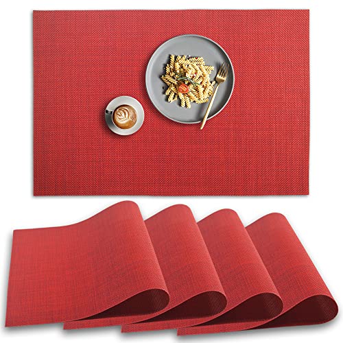 homEdge Lot de 4 sets de table en PVC, antidérapants, résistants à la chaleur, lavables, rouges