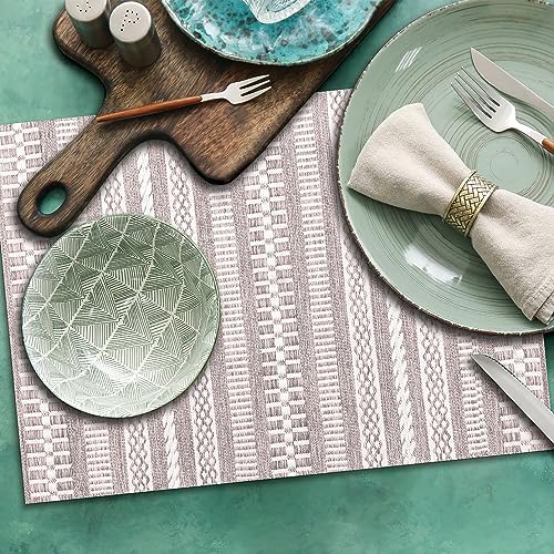 DII Lot de 6 Sets de Table tissés en PVC pour intérieur/extérieur, 33 x 44 cm, Pierre