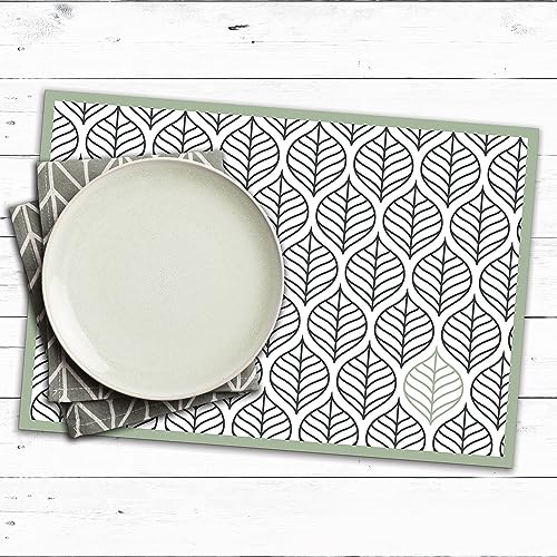 Jaritto Lot de 4 Sets de Table PVC Napperons Vinyle Tissé Lavables Resistant à la Chaleur Antidérapant pour Restaurant Salle Manger Kaki