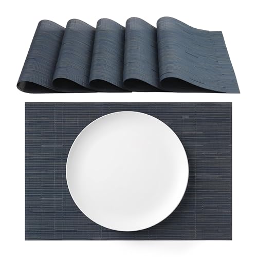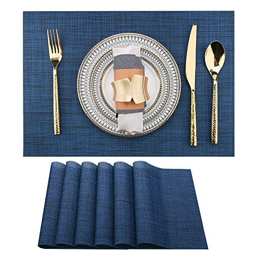 SLKQG Lot de 6 Sets de Table en Vinyle Bleu Marine – Lavables et faciles à Nettoyer – Lot de 6 Sets de Table en PVC résistants à la Chaleur antidérapants pour Table de Salle à Manger