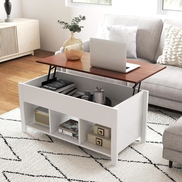 Drmoxin Table Basse Réglable en Hauteur, Extensible, Multifonctionnelle Et Transformable en Table De Salon/Salle à Manger, avec Rangement Dissimulé
