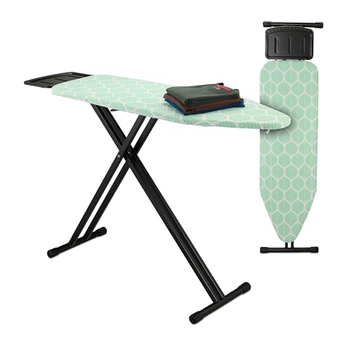 Relaxdays Table à Repasser, réglable en Hauteur, Pliable, Plateau de Repassage LP env. 123 x 39 cm, Vert et Noir