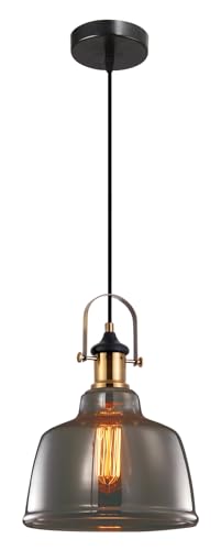 GTV MUSCARI Lot de 2 lampes suspendues Ø 22 cm – Verre fumé avec accents en laiton, douille E27, IP20, câble réglable en hauteur, couleur unie, idéal pour table à manger et îlot de cuisine, éclairage