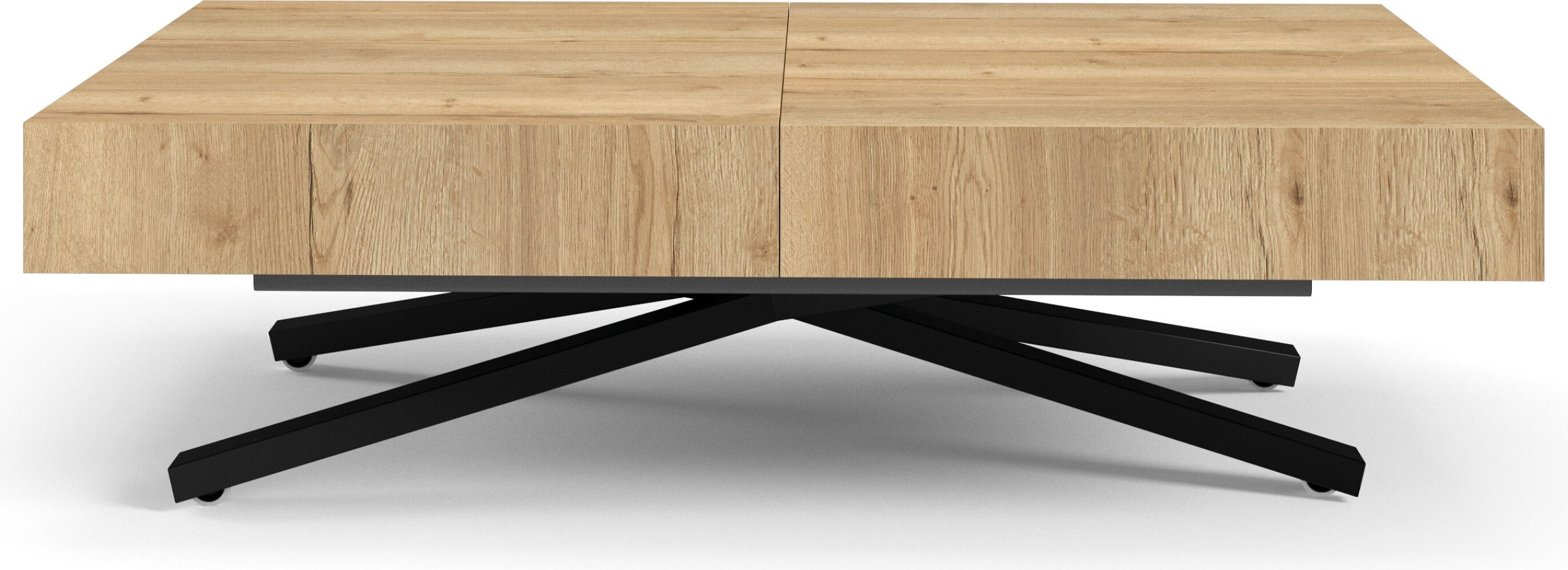 Table basse Sena X extensible et réglable en hauteur, table extensible de 120 cm à 200 cm, table de salon couleur Natural Halifax, avec pieds en métal noir