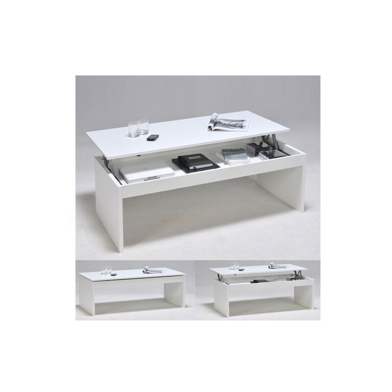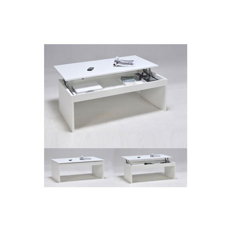 Beaux Meubles Pas Chers - Table Basse Relevable 90 cm Blanche 3 Niches