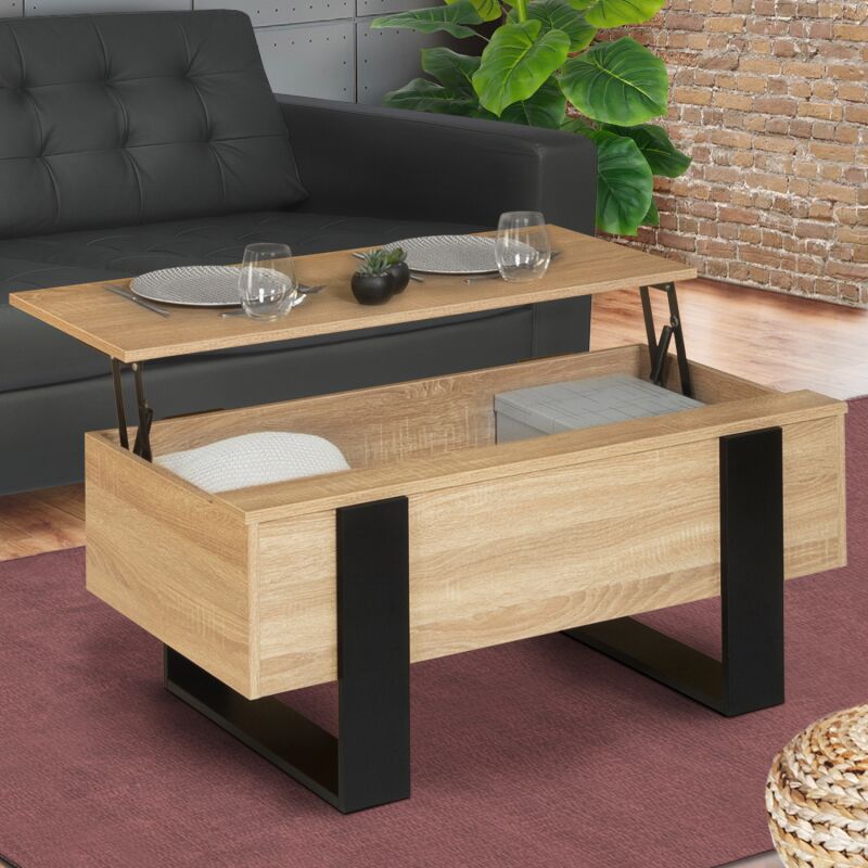 Ventamueblesonline - Table basse relevable Basic parfaite pour le salon en couleur chêne naturel en mélamine 100x50 cm