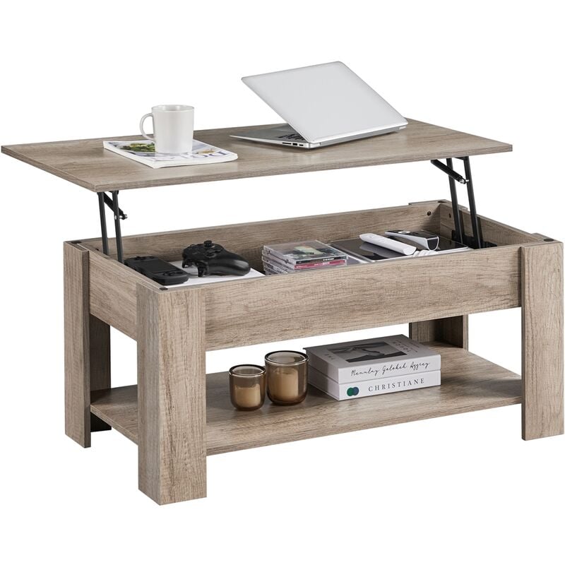 Table basse avec Plateau Relevable Table de salon Moderne avec Etagère de Rangement Compartiment Caché pour Salon Bureau 98 x 50 x 42 cm Gris
