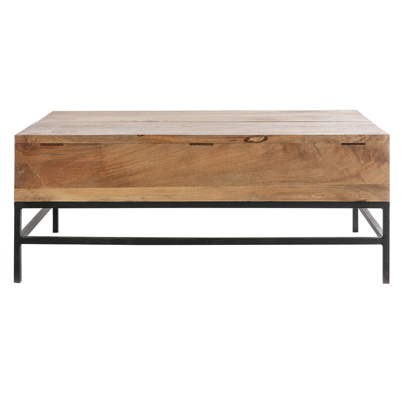 Table basse plateau relevable rectangulaire detroit avec coffre design industriel