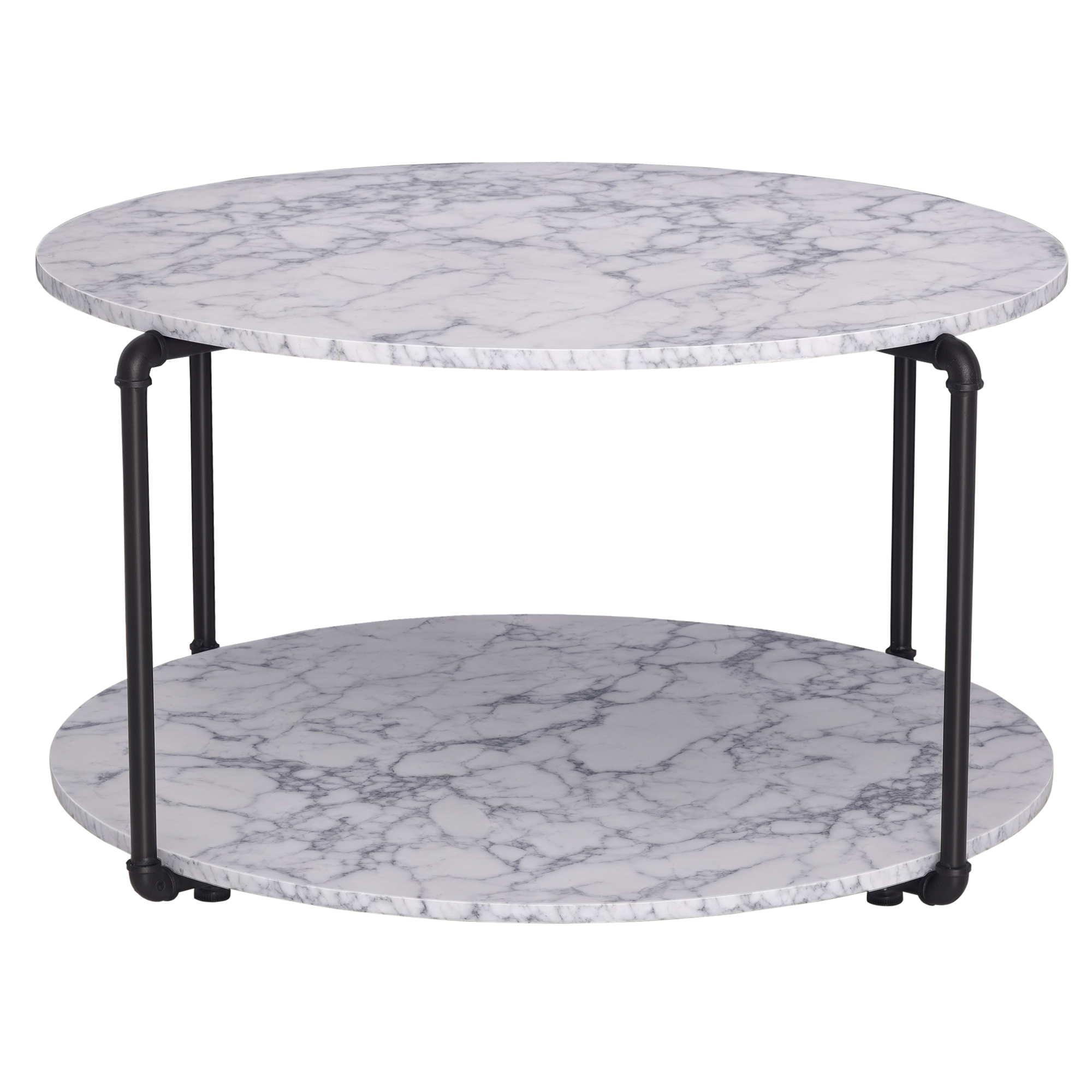 Macabane Table basse ronde Blanc 50x50cm plateau effet marbre piètement métal DALY