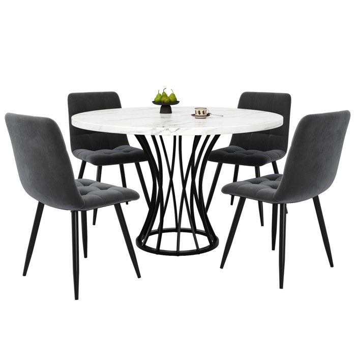 New Works Florence matbord runt gris du marais marble, o120 cm, svart stativ