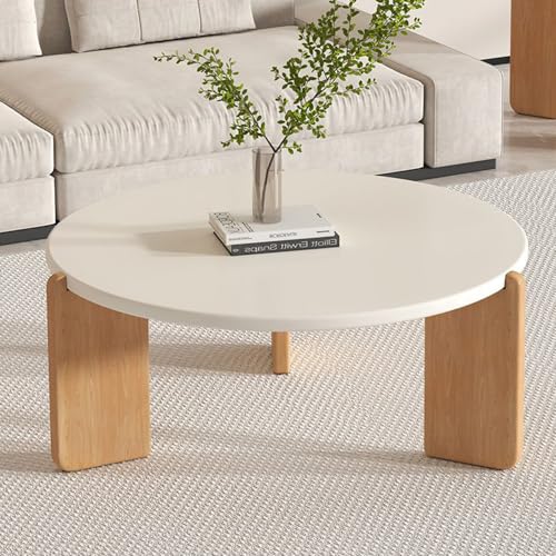 Table basse ronde pour salon, table d'appoint robuste avec pieds en bois massif, bureau à thé polyvalent, idéale pour la décoration d'intérieur contemporaine