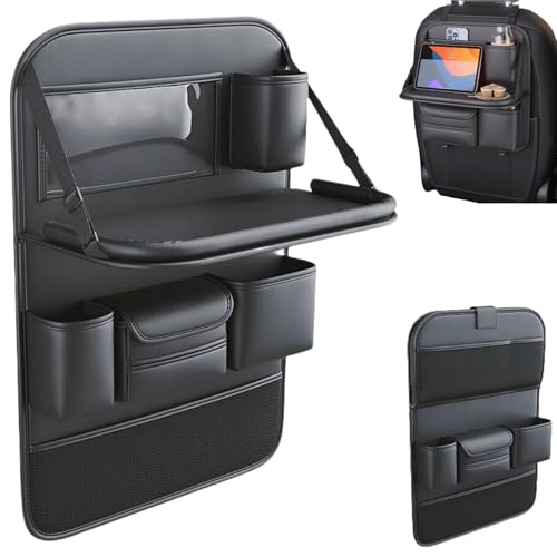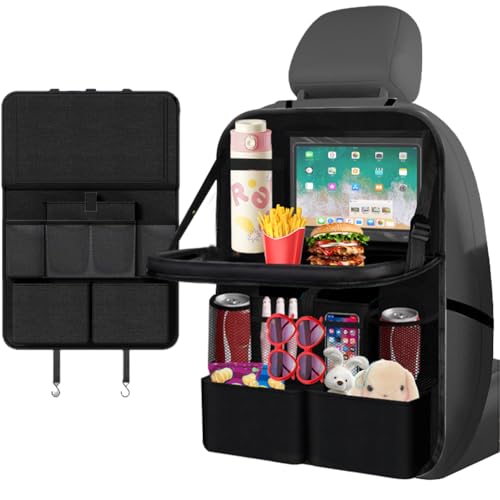 TechVizrs Organisateur de Siège Auto, Organiseur de Siège Arrière de Voiture, Protection de Dossier de Siège Auto pour Enfants avec Table Pliante et Pochette pour Tablette/téléphone Portable