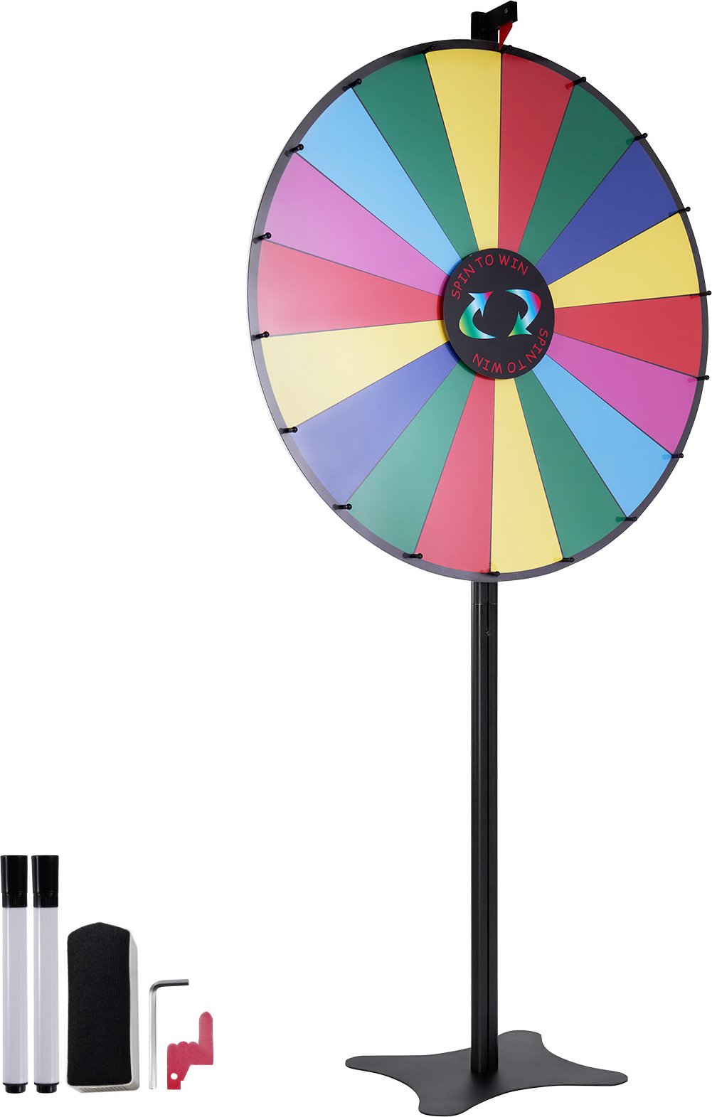 VEVOR Roue de la fortune 91 cm avec 18 compartiments, roue de roulette avec stylo effaçable à sec & 2 marqueurs, à poser sur une table ou sur le sol pour jouer à des jeux de hasard pour des fêtes, des bars, etc.