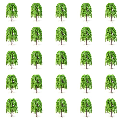 Rehoetom 25pcs 3D Modèle Saule Arbres pour Aménagement Paysage, Train Train & Table Sable Décoration - 5.5cm de Hauteur Plastique + Résine Miniature Jardin Décor Vert