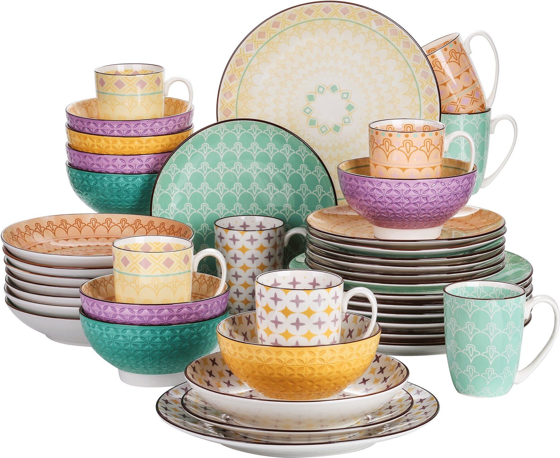 Service de table en porcelaine Vancasso « Tulip », service de 40 pièces comprenant des assiettes plates, des assiettes à dessert, des assiettes creuses, des bols à céréales et des tasses à café pour 8 personnes