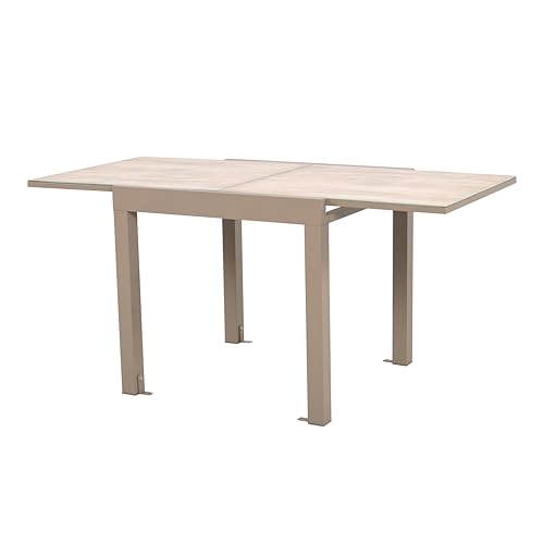 HOME DECO FACTORY - HDO7457 - Table Extensible Rectangulaire pour Extérieur - Idéale pour Repas en Famille ou Entre Amis - Passe de 80X80 cm à 80X160 cm - en Verre Trempé et Métal - Couleur : Gris
