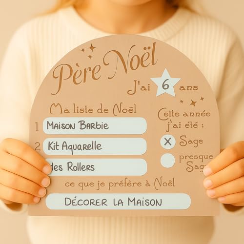 Pancarte Liste au Père Noël Enfant – Tableau Effaçable Réutilisable en Bois – Ardoise à Compléter pour Photo Souvenir Noël – Écriture Feutre Effaçable – Idée Cadeau Magique pour Enfants et Famille
