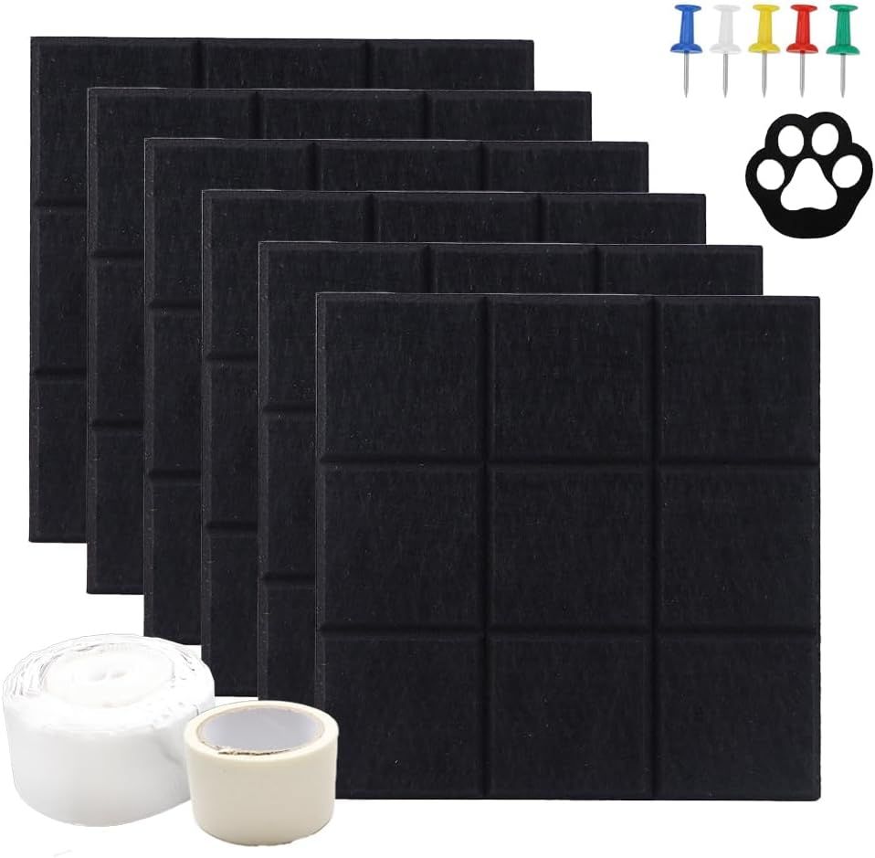ChenQuanSarl-6Pcs Tableau D'Affichage En Feutre Avec 60 Puna s Carreaux De Panneau De Feutre Mural Pour Lettres Notes Mémos Et Déco Murale De Bureau À Domicile (Noir 30X30 Cm)