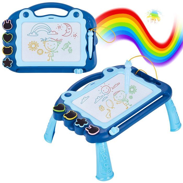 Ardoise Magique Enfant Tableau de Dessin Magnétique Effaçablem Ardoise Magnétique Magique avec Pieds pour Garçons Filles-Bleu