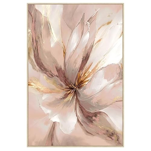 Bestpricepictures Tableau sur toile avec cadre en bois d'une fleur en blanc, beige et marron 80 x 120 x 3,5 cm