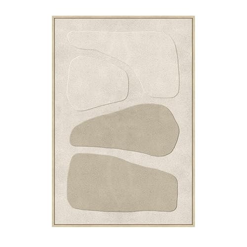 DRW Bestpricepictures Tableau abstrait avec cadre en bois naturel blanc et beige 92 x 62 x 4,5 cm