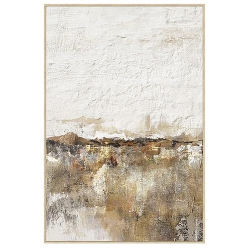 Bestpricepictures Tableau sur toile avec cadre en bois d'un paysage blanc et beige 80 x 120 x 3,5 cm