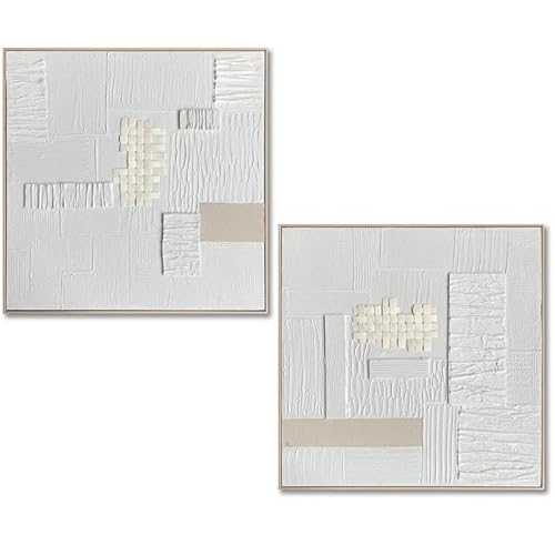 DRW Tableau sur Toile Abstrait avec Cadre en Bois Naturel Blanc et Marron 102 x 102 x 4,5 cm