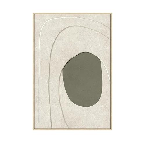DRW Tableau sur toile avec cadre en bois abstrait en blanc et vert 60 x 90 x 3,5 cm