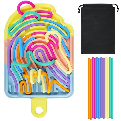 Elalove Sensorik Activity Board, Jouet sensoriel avec Motif de crème glacée, Tableau d'activités sensorielles Double Face pour Enfants de 3 Ans et Adultes (12 Cordons en Silicone colorés)