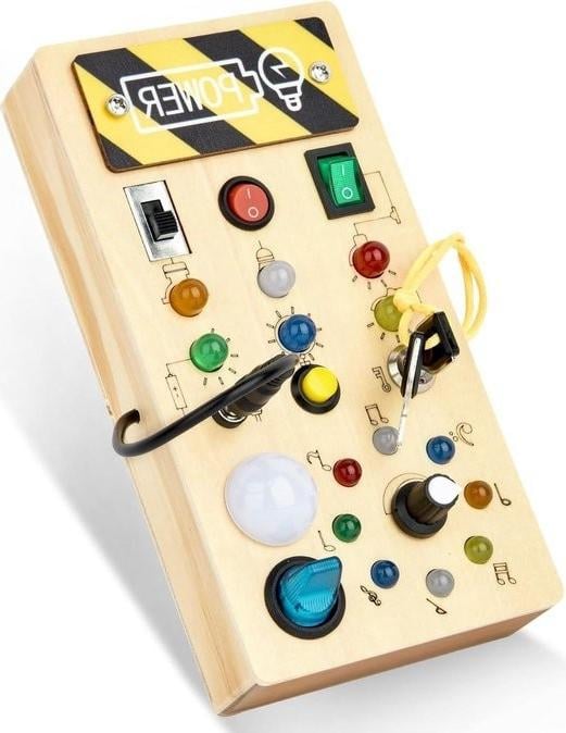 Tableau d'activités avec interrupteur lumineux LED - Jouet Montessori en bois - Jouet de voyage pour bébé - Tableau sensoriel - 1-5 ans - Educatif - Jeunes enfants dès 1 an - Enfants dès 1 an