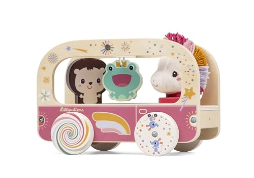 LILLIPUTIENS - Lena la Licorne - Bus d'activités en Bois - Personnage en Tissus - Multicolore - 21 cm - Dès 12 Mois - 83891