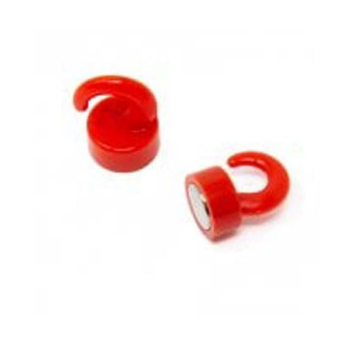 Mini Mini-Crochets Magnétiques en Plastique Rouge Pour Réfrigérateur, Bureau, Tableau Blanc, Tableau D'Affichage 12mm dia x 20mm de Haut - 1kg de Traction - Pack de 2