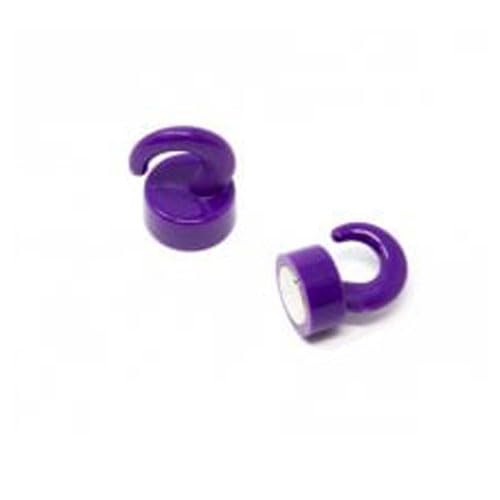 Mini-Crochets Magnétiques en Plastique Violet en Plastique Pour Réfrigérateur, Bureau, Tableau Blanc, Tableau D'Affichage 12mm dia x 20mm de Haut - 1kg de Traction - Pack de 2
