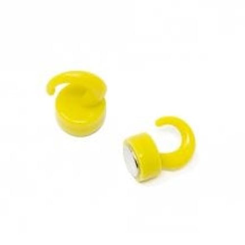 Mini Mini-Crochets Magnétiques en Plastique Jaune Pour Réfrigérateur, Bureau, Tableau Blanc, Tableau D'Affichage 12mm dia x 20mm de Haut - 1kg de Traction - Pack de 2