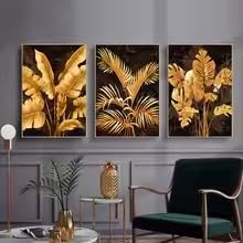 LMAIWANG Affiche abstraite sur toile représentant une feuille de plante dorée, tableau décoratif moderne pour salon (60 x 90 cm x 3/cadre)